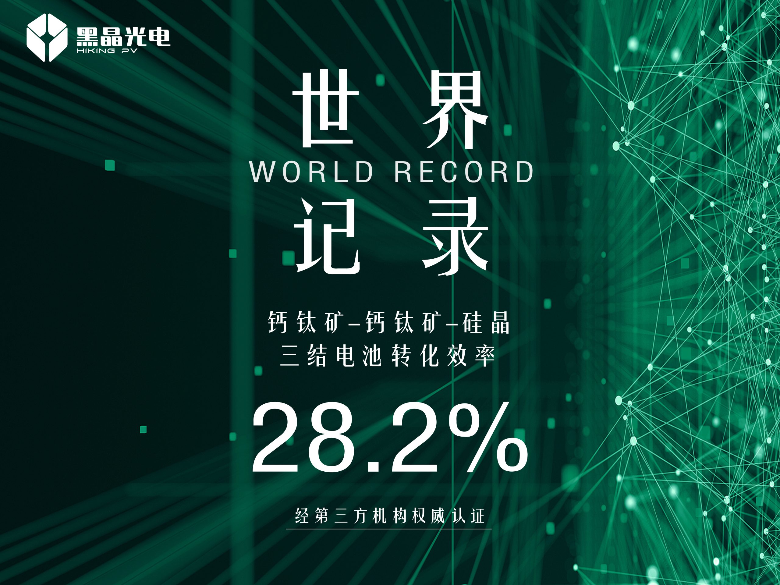 全球首家展示三层叠层技术企业,实现 28.2%转换效率,创世界纪录12月 4, 2024深圳黑晶光电技术有限公司—— 在光伏技术领域的持续创新中,公司在三层叠层电池领域再创佳绩。经过权威第三方认证,…阅读全文